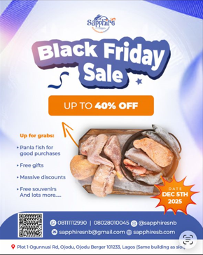 Sapphire Seafoods and Butchery, your trusted source for fresh seafood and quality meat in Lagos, is bringing you unbeatable Black Friday deals. Save the date: December 5th 2025